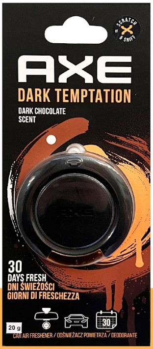 AXE DARK TEMPTATION CAR AIR FRESHENER DARK CHOCOLATE SCENT HANGING 20G